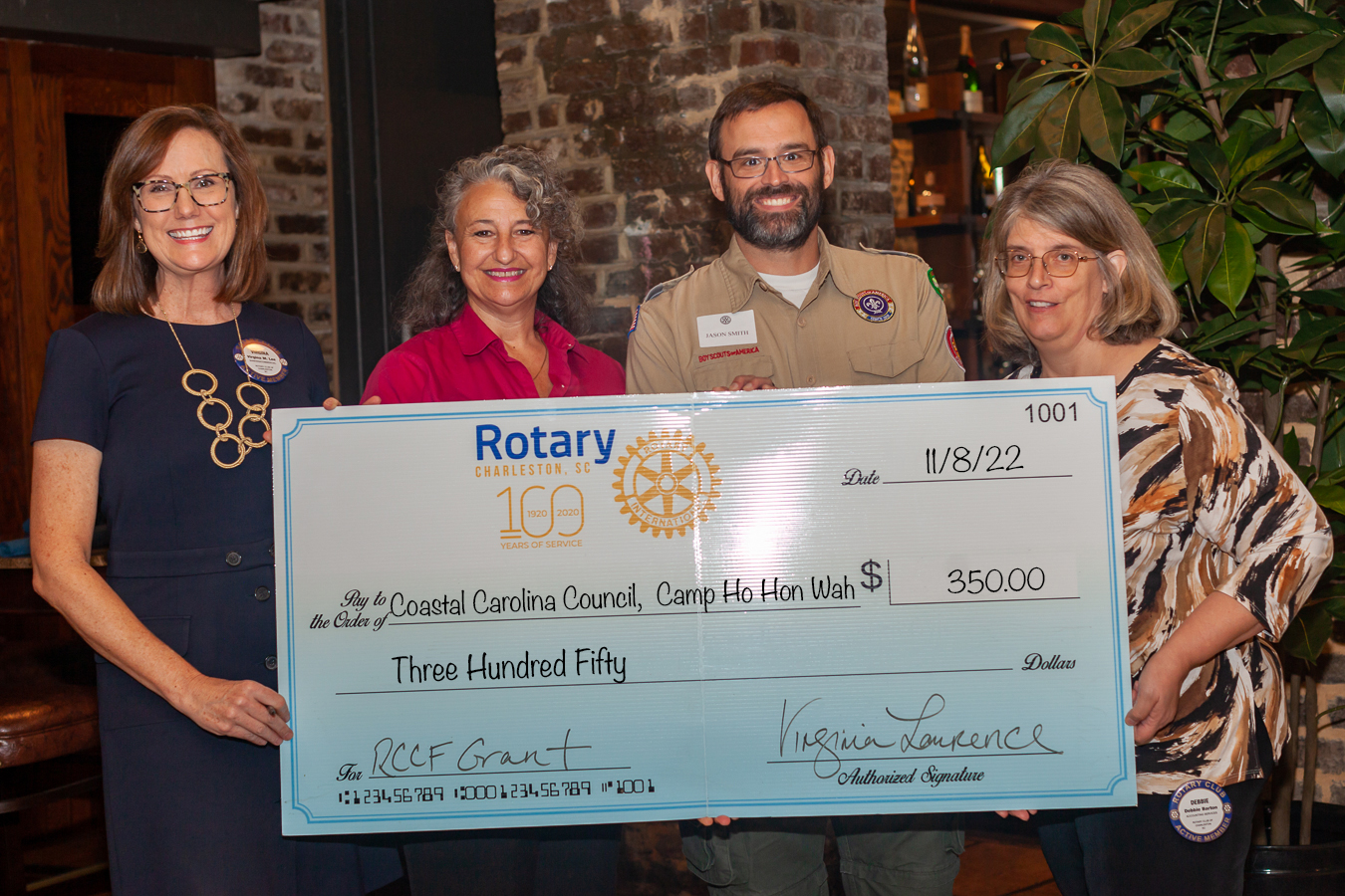 Donna Cook, Executive Director accepted the check on behalf of Charleston